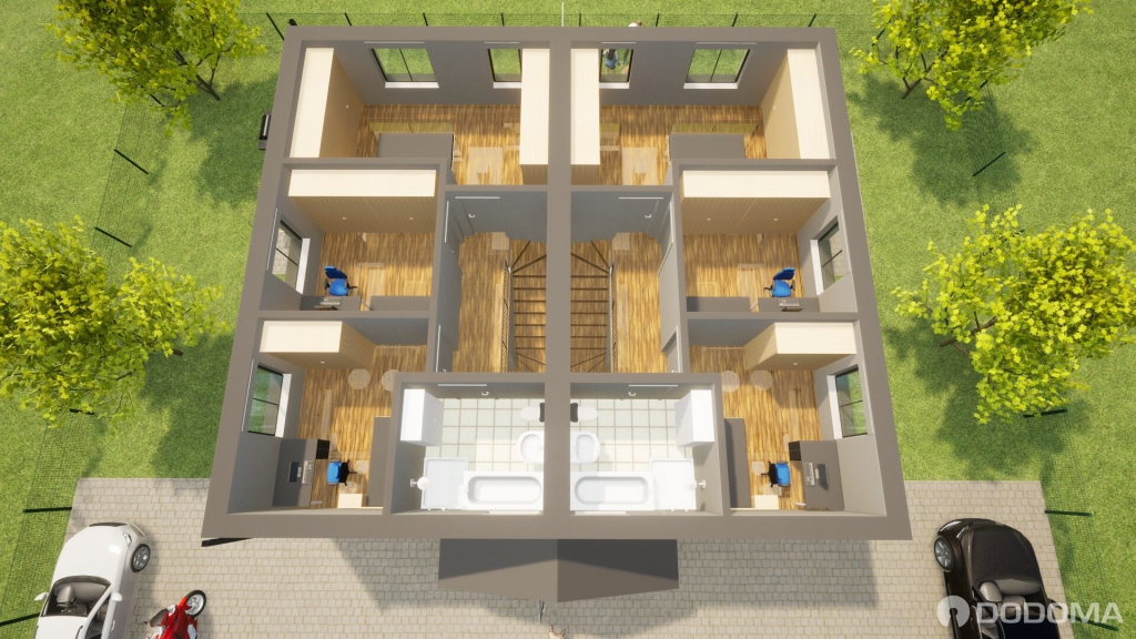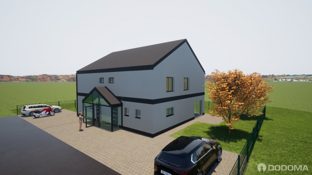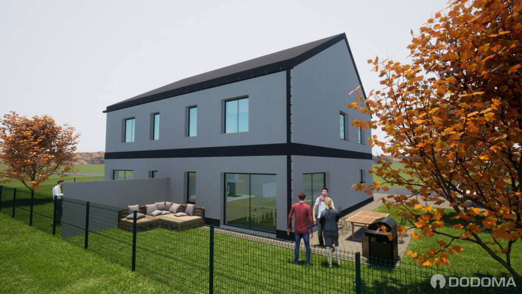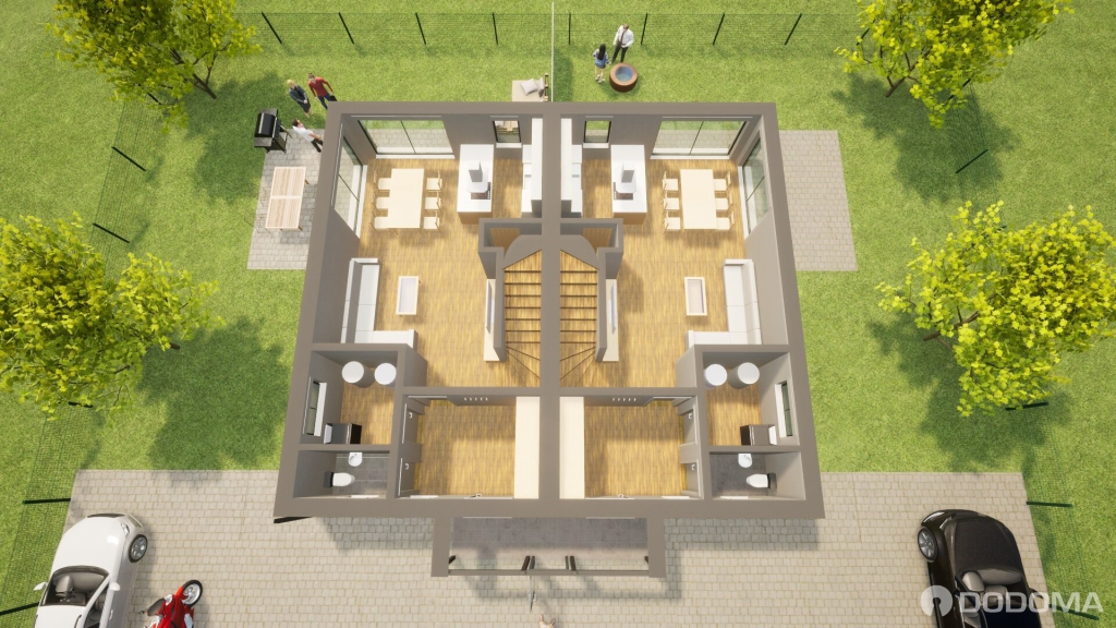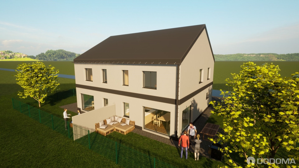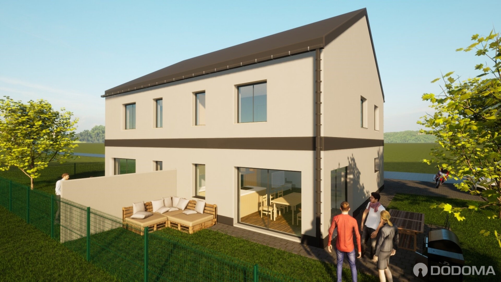 - v pritličju so predprostor, utility, wc, odprt bivalni prostor s kuhinjo, jedilnico in dnevno sobo, ki ima izhod na teraso