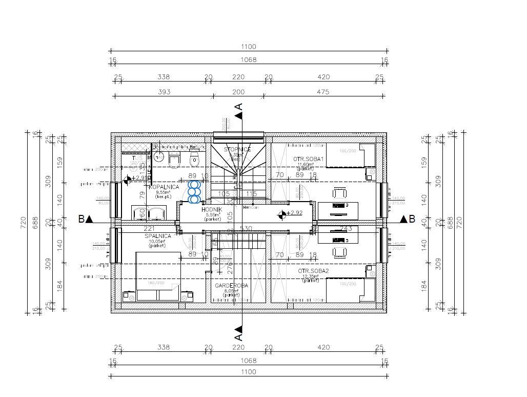 - Toplotna izolacija na podstrešju: debelina 30 cm